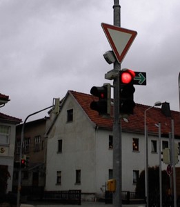 in Neustadt bei Coburg mit Signalgebern der Firma Swarco-Futurit. In